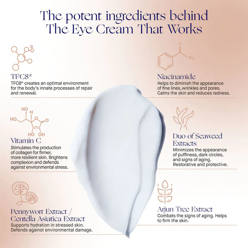 Поддерживает эластичность и повышает упругость кожи вокруг глаз для более молодого, подтянутого вида.