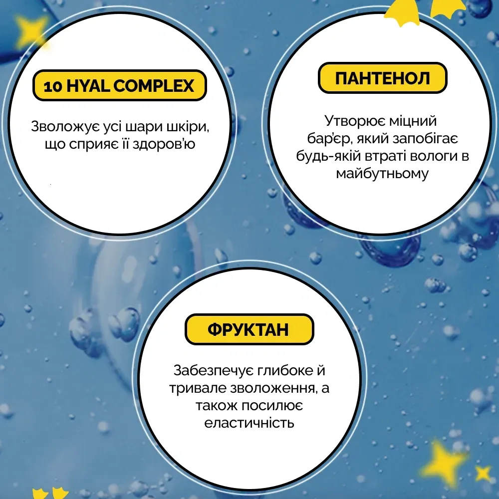 Средство содержит 1,88% ключевого компонента - 10-Hyaluronic Complex, который насчитывает 10 видов гиалуроновой кислоты (Hyaluronic Acid, Sodium Hyaluronate, Sodium Acetylated Hyaluronate, Hydrolyzed Hyaluronic Acid, Potassium Hyaluronate...), который интенсивно и глубоко увлажняет кожу на разных уровнях.