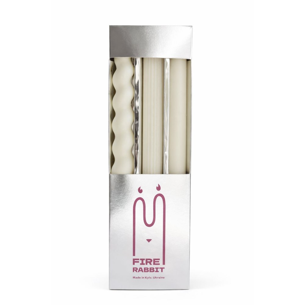 FIRE RABBIT Warm shades, set of 3 colored table candles Теплые оттенки, сет из 3 столовых свечей в цветах Молочный