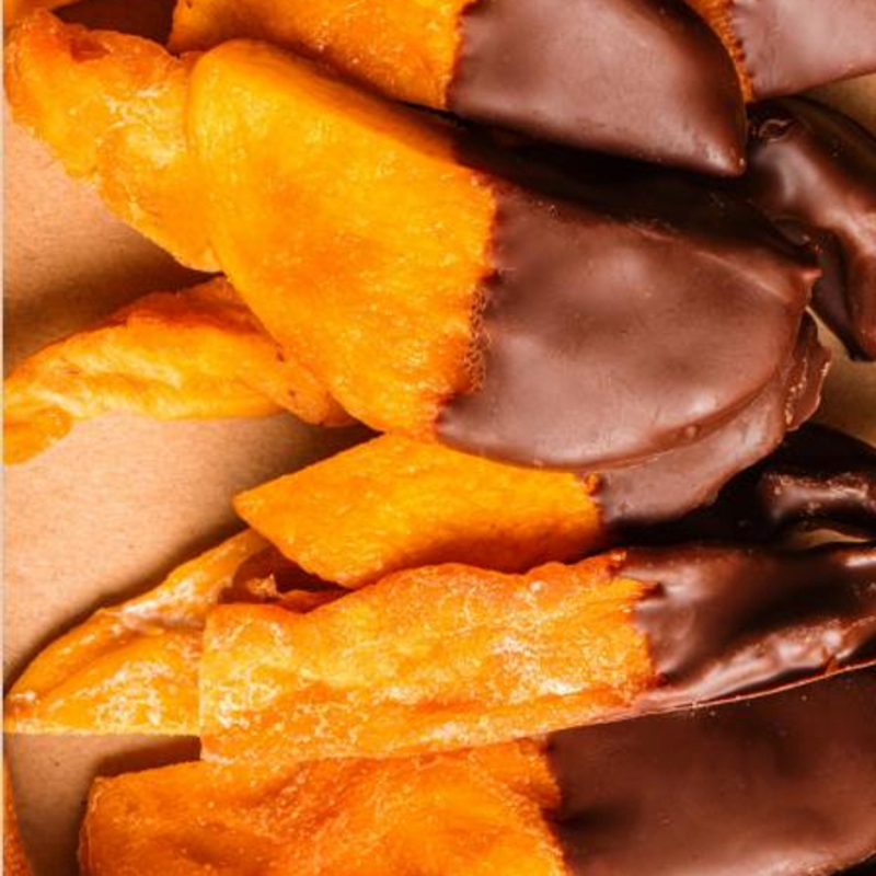 Натуральные сухофрукты в шоколаде – это несравнимое сочетание полезности манго, персика и дыни с нашим вкусным черным 55% шоколадом.