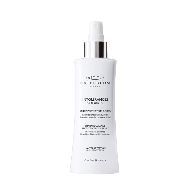 Легкая молочная эмульсия спрей для тела, для интолерантной кожи не переносящей солнца. Защищает кожу, которая может находиться на солнце не слишком продолжительное время без болезненных ощущений и риска появления аллергической реакции. Благодаря использованию крема, кожа постепенно адаптируется к солнцу. Спрей Intolérances Solaires с максимально высокой степенью защиты от солнца, защищает кожу от степеней инсоляции (мягкого и нормального солнца). Восстанавливает упругость и эластичность кожи, снижает гиперчувствительность кожи, усиливает природные защитные механизмы кожи, делая ее менее уязвимой во время инсоляции. Обеспечивает комфортное пребывание на солнце без риска получения аллергической реакции, лучевого дерматита. Благодаря проактивному комплексу, наделяет кожу способностью адаптироваться к воздействию солнечных лучей на трех уровнях: ДНК, клетки и ткани.