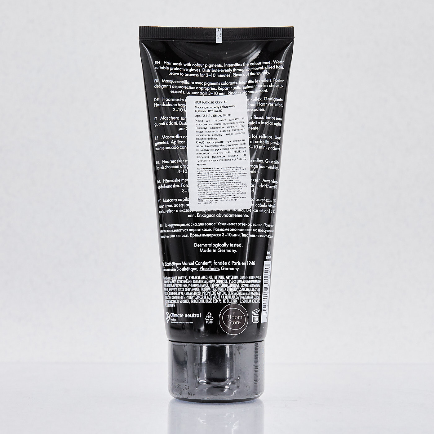 Сохраняет и усиливает интенсивность холодного оттенка блонд. Нейтрализует золотисто-желтые нюансы. Придает ледяное хрустальное сияние, которое держится 3-5 процедур мытья волос.