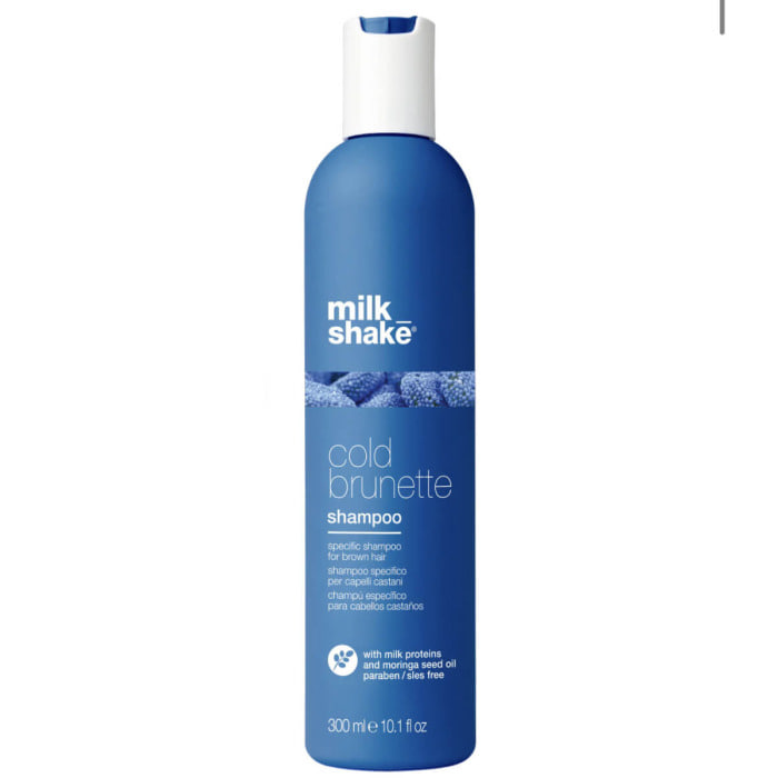 Шампунь для темных волос Milk Shake Cold Brunette Shampoo легко пенится и деликатно устраняет загрязнения, не травмируя эпидермис. При этом средство оказывает кондиционирующее действие, делая процесс расчесывания простым и приятным. Хорошо и то, что шампунь изготовлен на основе формулы с синими пигментами, которые удаляют нежелательные теплые тона, в т. ч. красно-оранжевые тона каштановых волос, продлевая эффект холодного тонирования. Одновременно с этим бьюти-продукт эффективно восстанавливает волосы, которые постепенно приобретают красивый блеск.