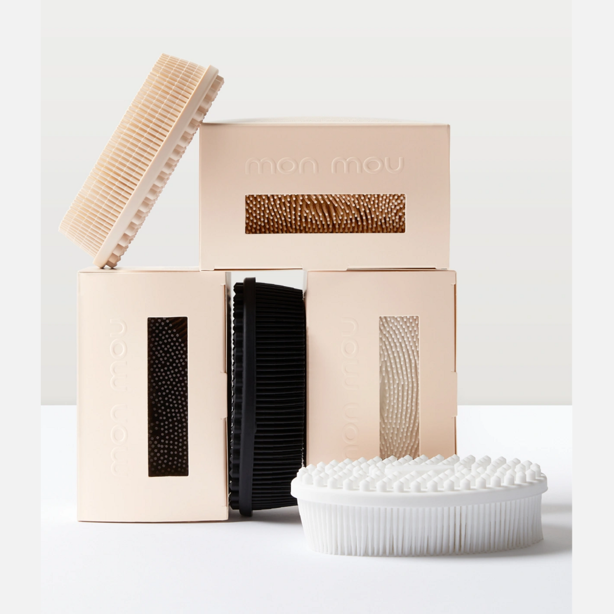 Нанесите небольшое количество душевого средства на мягкие щетинки MON MOU SOFT BODY BRUSH и легкими круговыми движениями промассируйте тело.