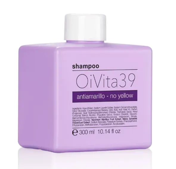 Шампунь OiVita39 против желтизны для седых, светлых и обесцвеченных волос. Уменьшает нежелательный желтый оттенок.
