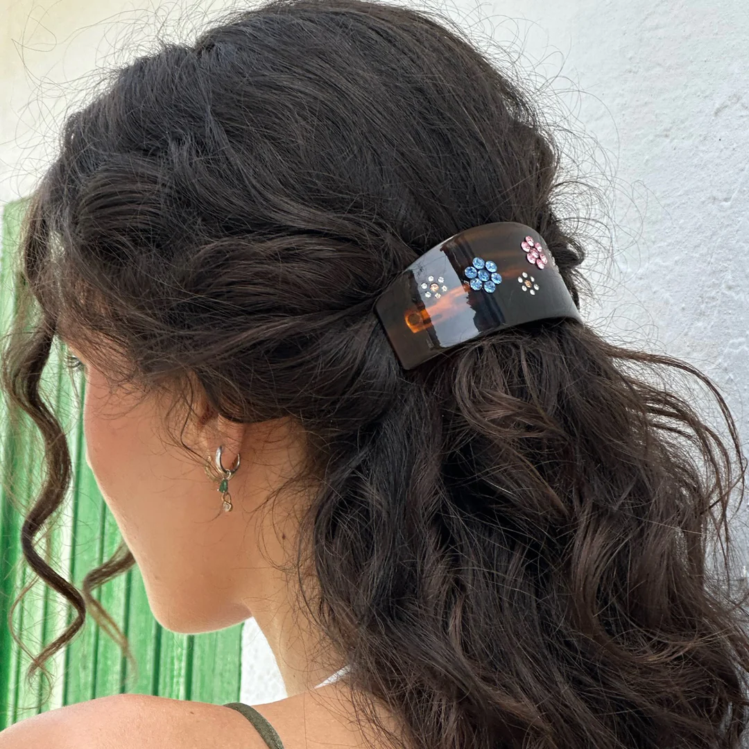 Этот держатель для конского хвоста, изготовленный вручную из 100% ацетата целлюлозы, имеет застежку-шпильку во французском стиле, что делает его идеальным решением для укладки волос любого типа.