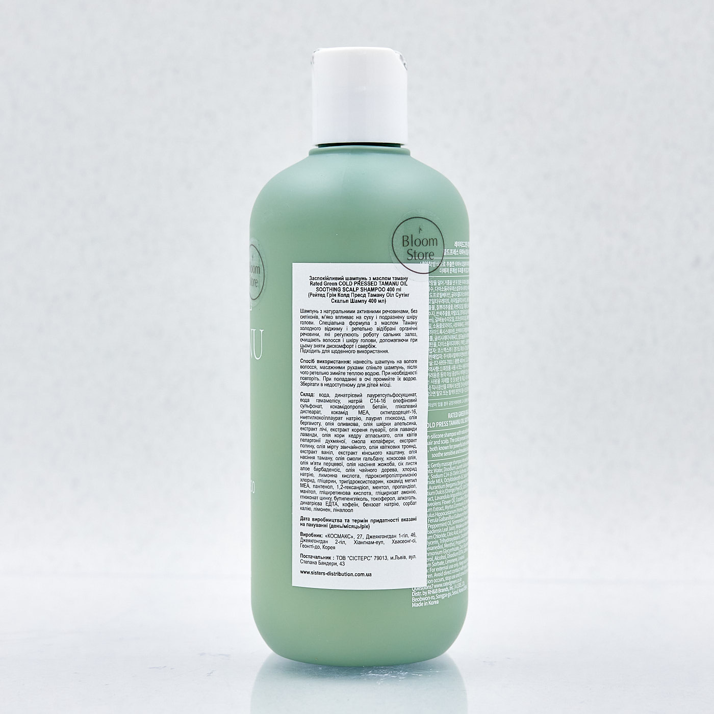 Успокаивающий шампунь Real Tamanu Cold Pressed Tamanu Oil Soothing Scalp Shampoo от бренда Rated Green (Южная Корея) ― препарат для профессионального использования, который обеспечивает не только чистый и свежий внешний вид локонам, но и делает их невероятно мягкими и шелковистыми.
