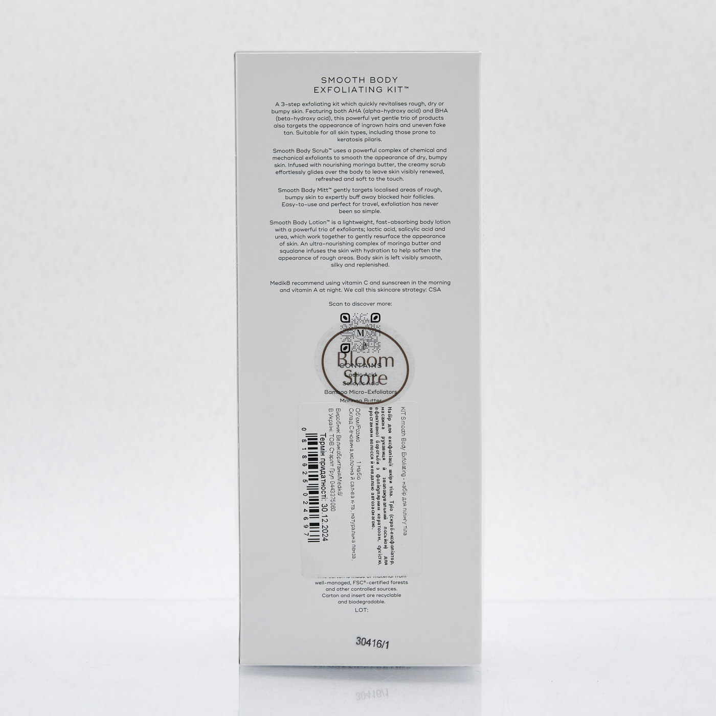 Лосьон Smooth Body Lotion имеет невесомую текстуру и быстро впитывается. В нем используется сила трёх эксфолиаторов: молочная кислота, салициловая кислота, мочевина. Вместе они эффективно и бережно обновляют поверхность кожи. Масло моринги и сквалан в составе лосьона обеспечивают глубокое питание клеток кожи. Эти компоненты гидратируют кожу и поставляют незаменимые липиды, устраняют признаки сухости и шероховатости, смягчают и разглаживают поверхность кожи