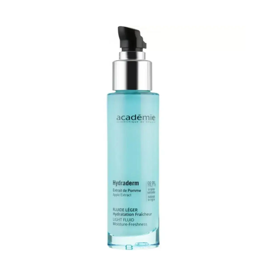 Academie Light Fluid з серії Hydraderm - ідеальне рішення для зволожуючого догляду за шкірою, так як його формула створена на основі оригінальної яблучної води (гідролат яблука). Яблучна вода є одним з найефективніших натуральних компонентів, що використовуються в боротьбі з віковими вадами в дермі.