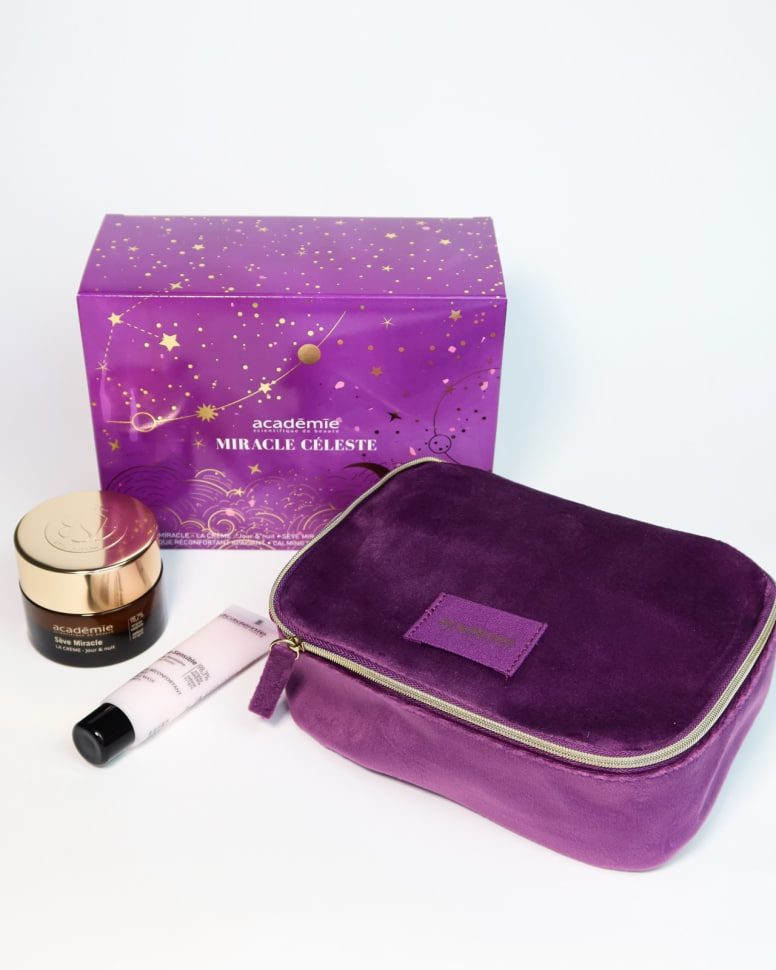 Відчуйте магію свят із розкішним подарунковим набором Académie – Miracle Céleste Набір Диво Різдво. Це не просто догляд — це втілення французької вишуканості, ніжності та краси. У м’якому оксамитовому мішечку заховані два коштовних засоби, які подарують вашій шкірі доглянутість і сяйво.