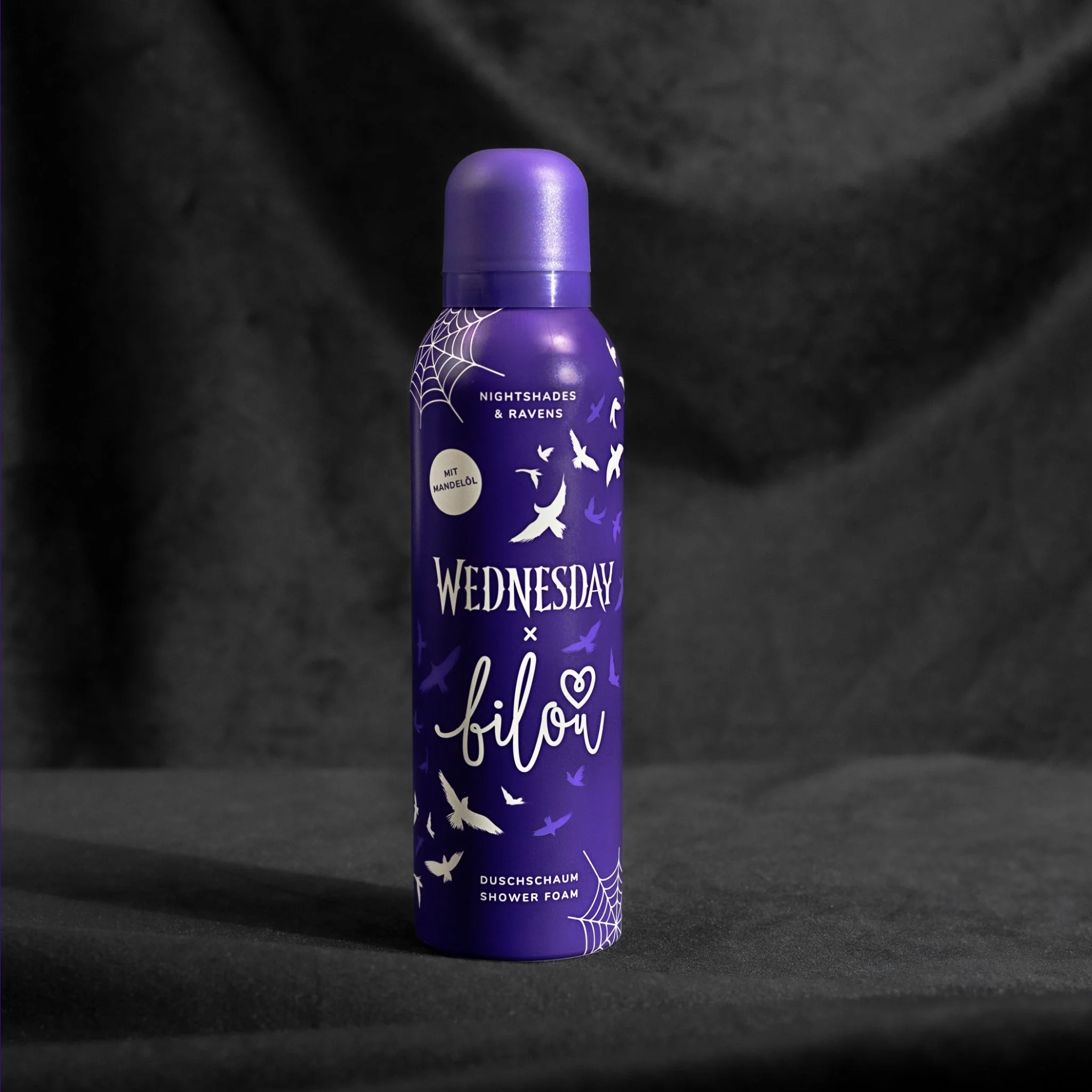 Пінка для душу Wednesday Nightshades & Ravens - легка повітряна пінка для душу змусить вас відмовитися раз і назавжди від звичних гелів та кремів. Bilou&Wednesday Nightshades & Ravens огортає вас чарівною аурою червоної малини та чорних бобів тонка. Пінка м’ягко огортає шкіру, делікатно очищаючи і водночас зволожуючи її. Після приймання ванни з цим засобом шкіра стає м’якою та бархатистою, без натяку на сухість чи стягнутість.