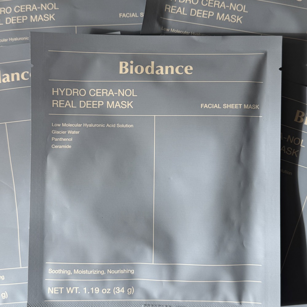 Biodance - Hydro Cera-nol Real Deep Mask - гідрогелева маска для обличчя, що складається з двох частин (для нижньої та верхньої частини обличчя). Вона призначена для нанесення на всю ніч або мінімум на 3-4 години для глибокого зволоження шкіри та підвищення її еластичності. Маска містить композицію компонентів із заспокійливою та зволожувальною дією. Її формула включає низькомолекулярну гіалуронову кислоту, що зв'язує воду, і пантенол, який сприяє регенерації та заспокоює подразнення. Водночас цераміди зміцнюють гідроліпідний бар'єр, а льодовикова вода заспокоює і пом'якшує шкіру. Після того, як активна есенція вбереться в шкіру, маска стає прозорою.