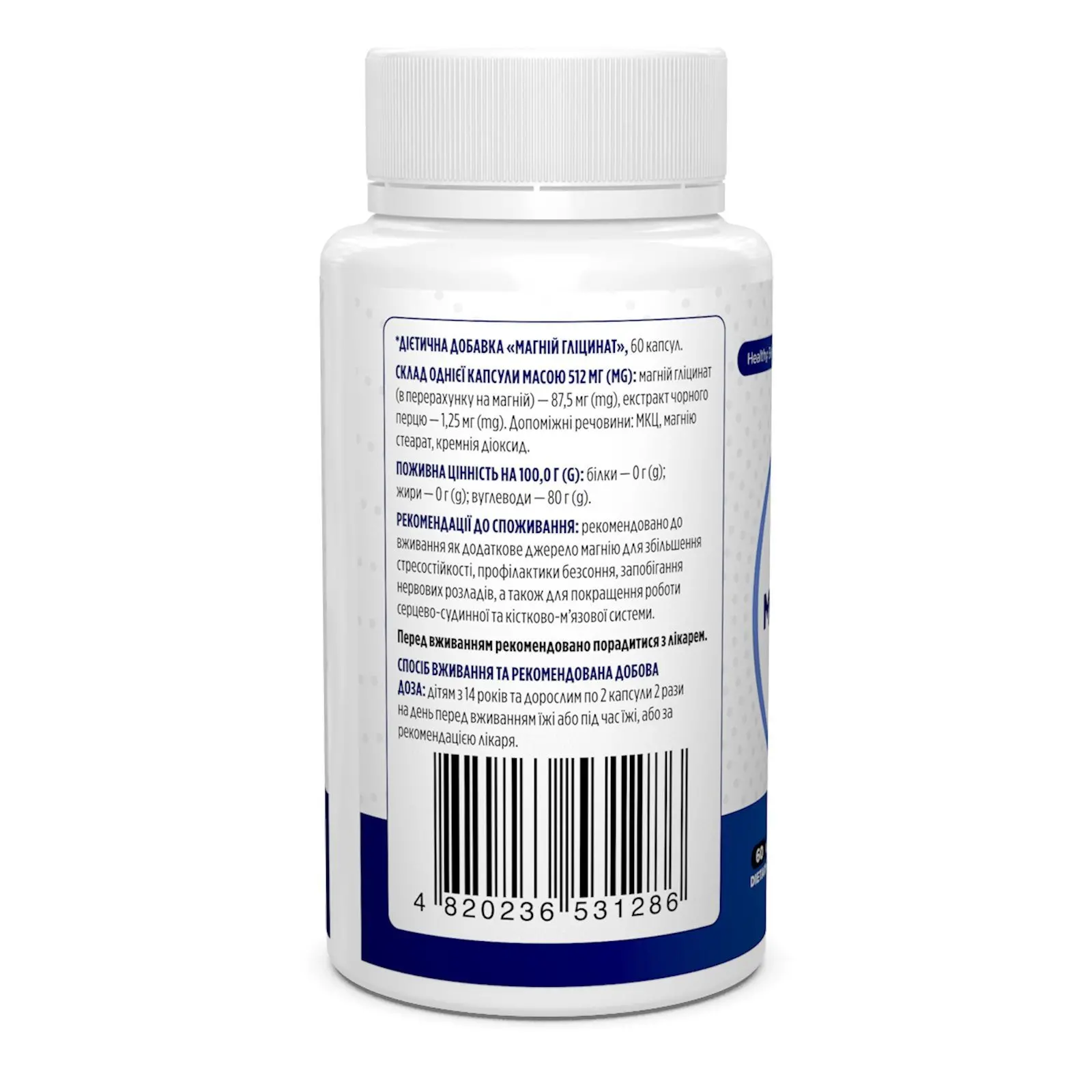 Висока біодоступність: Гліцинат магнію легко засвоюється організмом, що сприяє покращенню його використання організмом та максимальний результат.