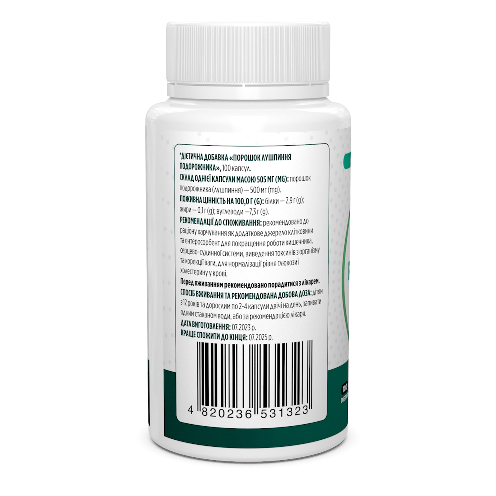 Продукт на основі лушпиння подорожника є натуральним джерелом клітковини, яка відіграє ключову роль у підтримці здоров'я та покращенні якості життя.