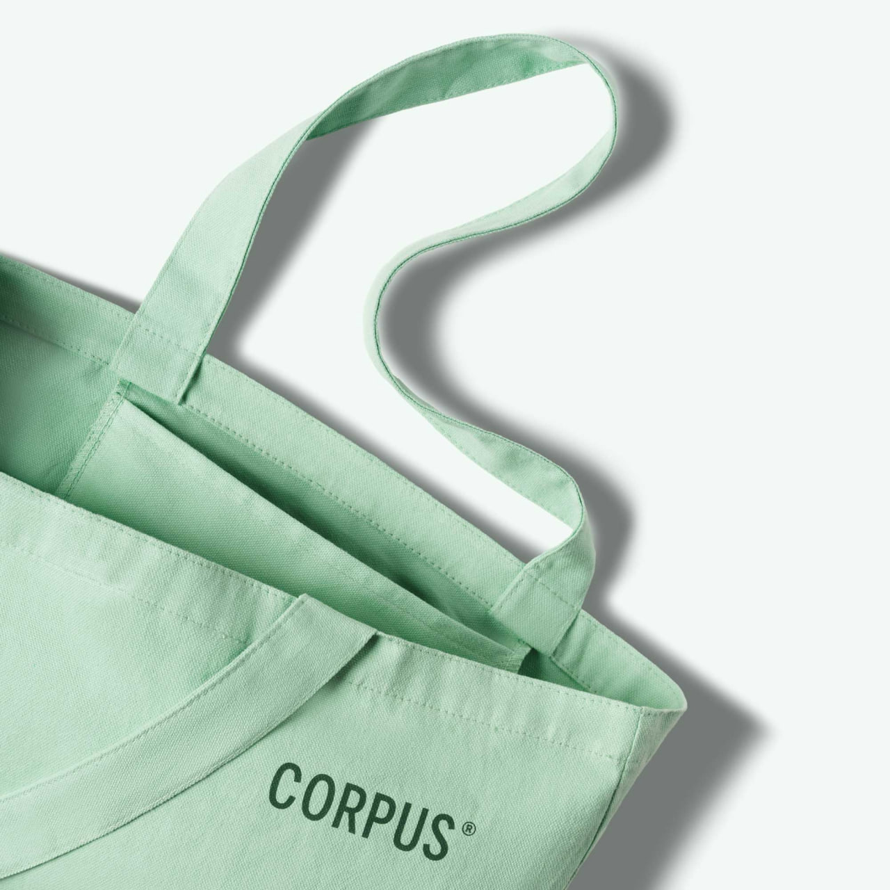 Шопер зі 100% бавовни у фірмовому зеленому кольорі CORPUS. Має містке основне відділення та зручну внутрішню кишеню для дрібниць. Шопер є стильним та практичним аксесуаром для щоденних покупок та прогулянок.