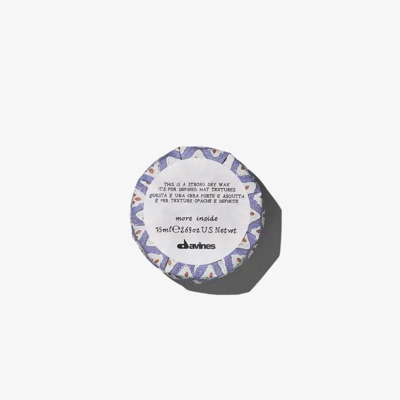 Сухой воск имеет фактор экстра-увлажнения и фактор отсутствия хлопьев благодаря каолину, порошку из осадочной горной породы и пчелиному воску натурального происхождения, используемым для моделирующей способности и поддержки стайлинга.
