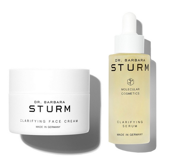 Dr. Barbara Sturm Clarifying Duo - продуманий дует засобів для догляду за проблемною шкірою, що включає повнорозмірні версії двох ключових продуктів: заспокійливу та вирівнюючу Clarifying Serum, а також антивіковий Clarifying Face Cream, який інтенсивно зволожує, бореться з недосконалістю та зволожує шкіру. Набір забезпечує комплексну дію - від глибокого очищення та зняття запалень до розгладжування текстури та надання сяйва. Ідеальний дует для щоденного догляду за шкірою, схильною до висипів.