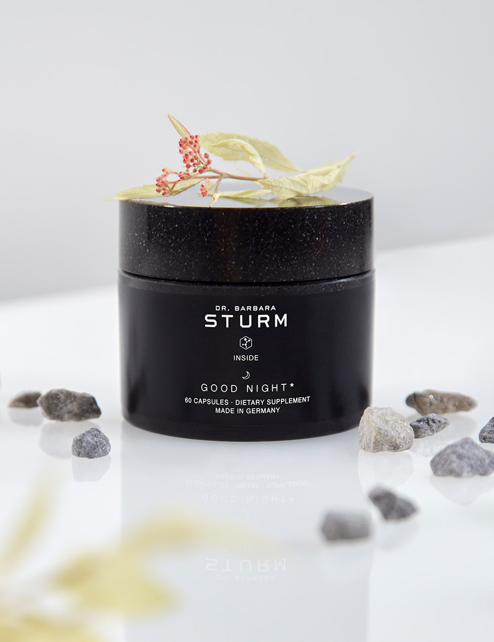 Під час сну в організмі запускаються регенеративні процеси, завдяки яким посилюється кровопостачання, оновлення шкіри, відновлюється епідерміс. Dr. Barbara Sturm розробила інтенсивну формулу для покращення якості сну. Інгредієнти Good Night забезпечують заспокійливу та відновлюючу дії за рахунок натуральних трав, таких як екстракти квітів лаванди, валеріани, пасифлори та хмелю. До складу добавки був включений потужний антиоксидант портулак і ніацин (нікотинова кислота), яка не накопичується в організмі, але бере участь у життєво важливих окисно-відновних реакціях. Також Good Night містить 5-HTP та вітаміни В6, В12, які сприяють нормалізації функціонування нервової системи.