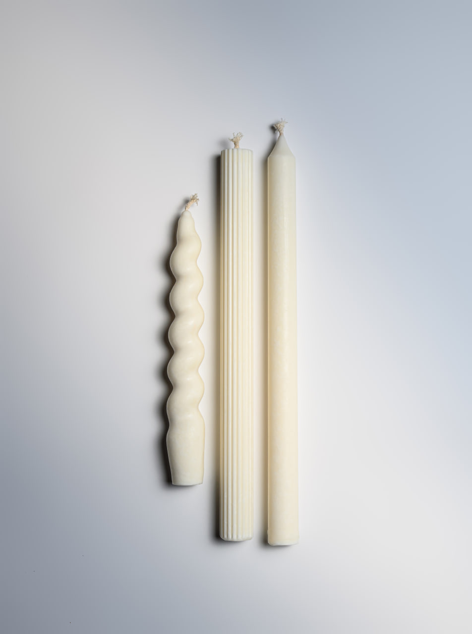 FIRE RABBIT Taper Candles, Full Set of 3 White Набір Свічок Білий