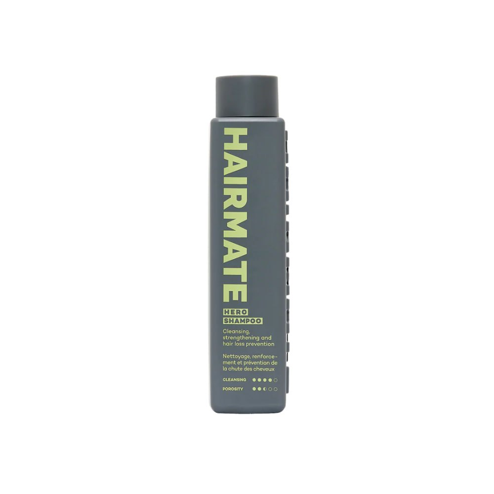 Його унікальна формула дбайливо очищає шкіру голови та волосся від забруднень, не пересушуючи його. Регулярне застосування Шампуню зміцнювального Hairmate Hero Shampoo допомагає зменшити ламкість і випадіння волосся, сприяє його зміцненню від коренів до кінчиків.