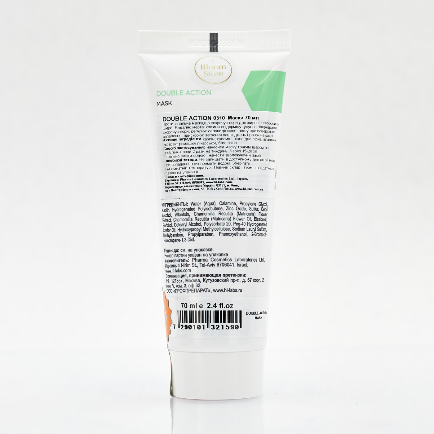 Примітка: Маска не наноситься на повіки. Може викликати почервоніння і подразнення шкіри у людей з гіперчутливістю до сірки.