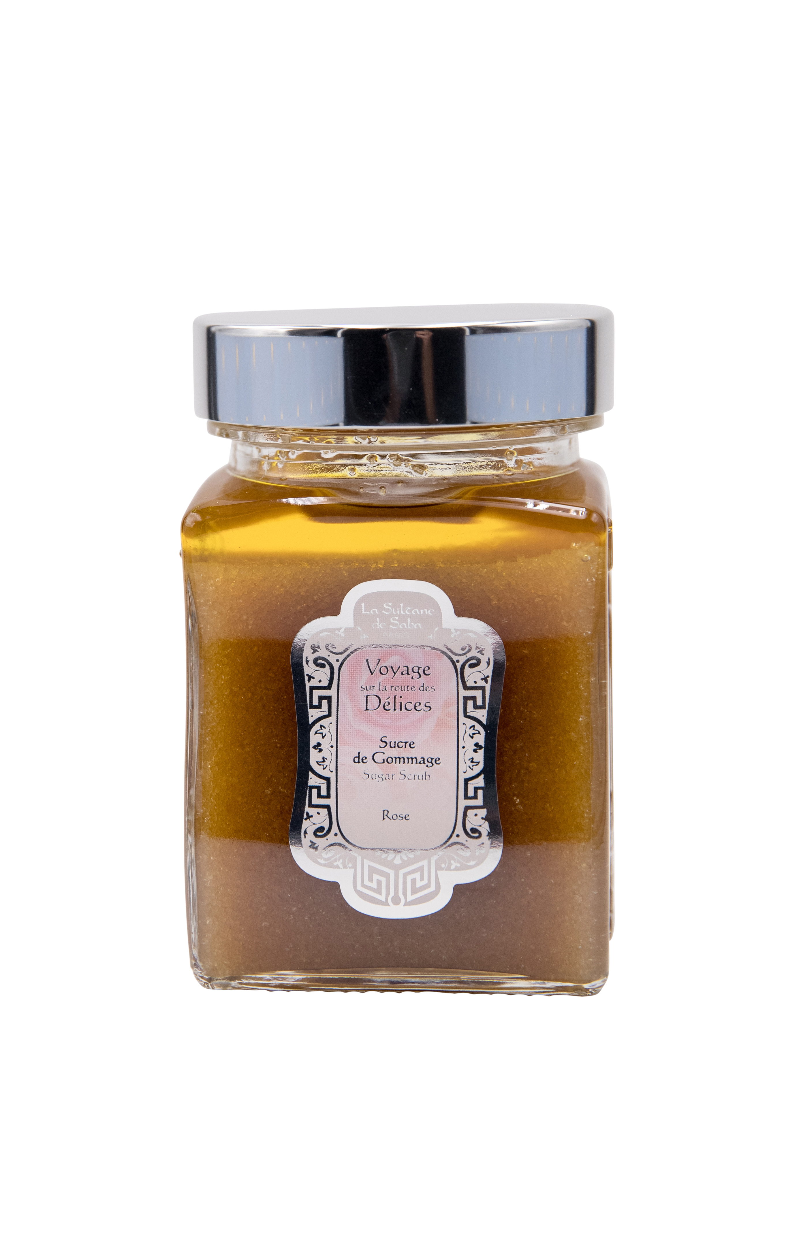 Цукровий скраб на основі тростинного цукру і екстрактів олій з ніжним ароматом троянди, що видаляє забруднення і омертвілі клітини і надає шкірі гладкість.