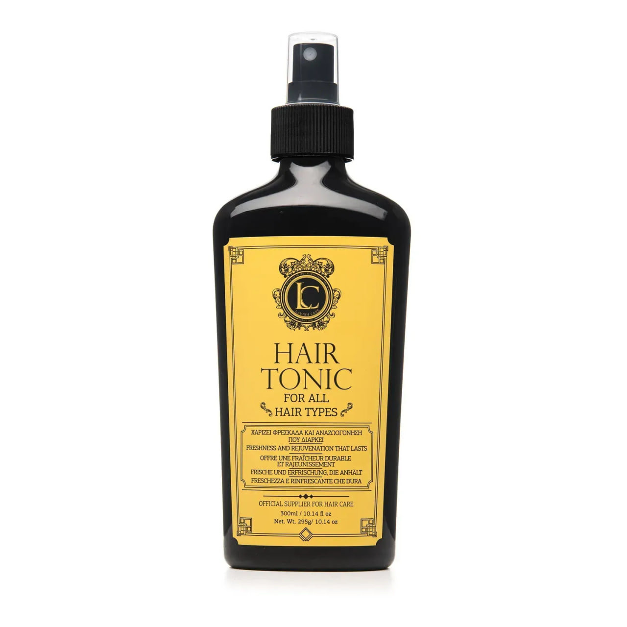 Тонік для догляду за волоссям HAIR TONIC відновлює натуральний блиск Вашого волосся, надає йому еластичності та тривалої свіжості. Продукт містить високоактивні інгредієнти, які покращують кровообіг шкіри голови та тонізують її. Унікальна формула тоніка не жирнить і не обтяжує волосся та зберігає укладку. Використовуйте його протягом дня, щоб відновити зачіску та освіжити свій вигляд. Ідеально підходить для зволоження волосся під час стрижки.