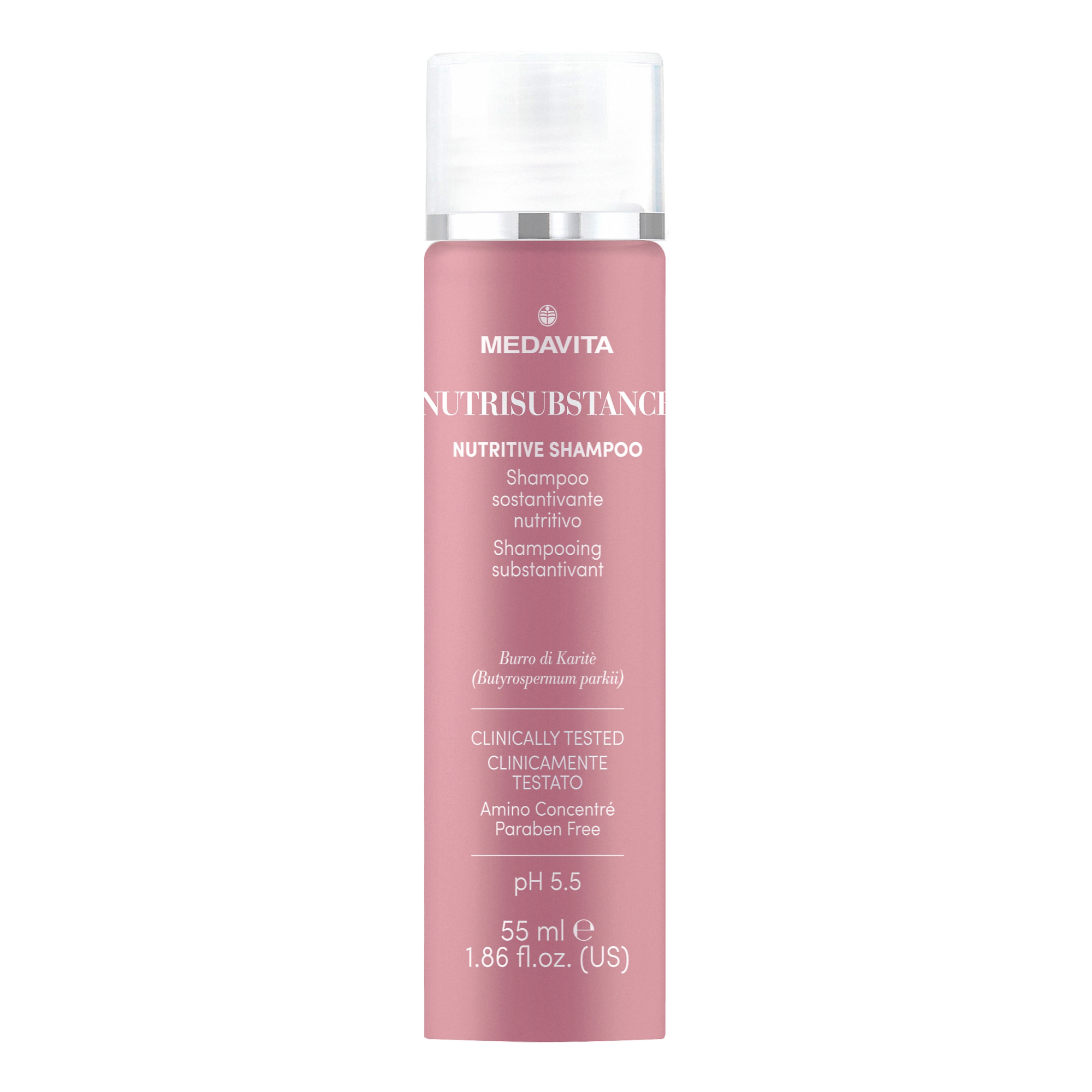 Шампунь живильний для сухого волосся (pH 5.5). Зміцнює волокна волосся, має високу концентрацію активних інгредієнтів, які забезпечують зволоження та насичення поживними речовинами навіть під час очищення. Глибоко живить і пом'якшує структуру волосся, огортає довжину та кінчики, робить волосся шовковистим, блискучим та слухняним.