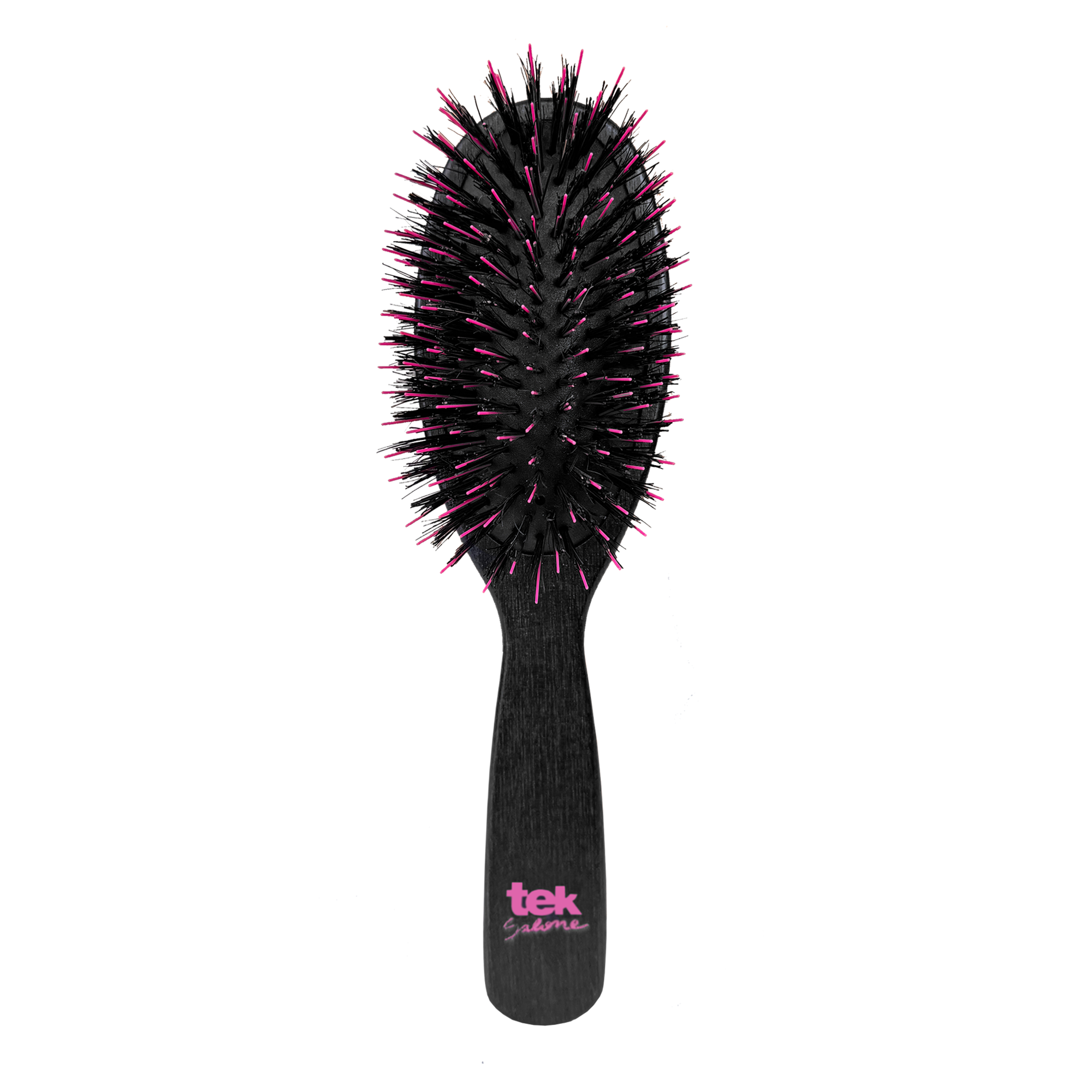 Овальна щітка з натуральною щетиною кабана та гумовою подушкою ідеально підходить для надання об'єму та догляду за нарощеним волоссям.