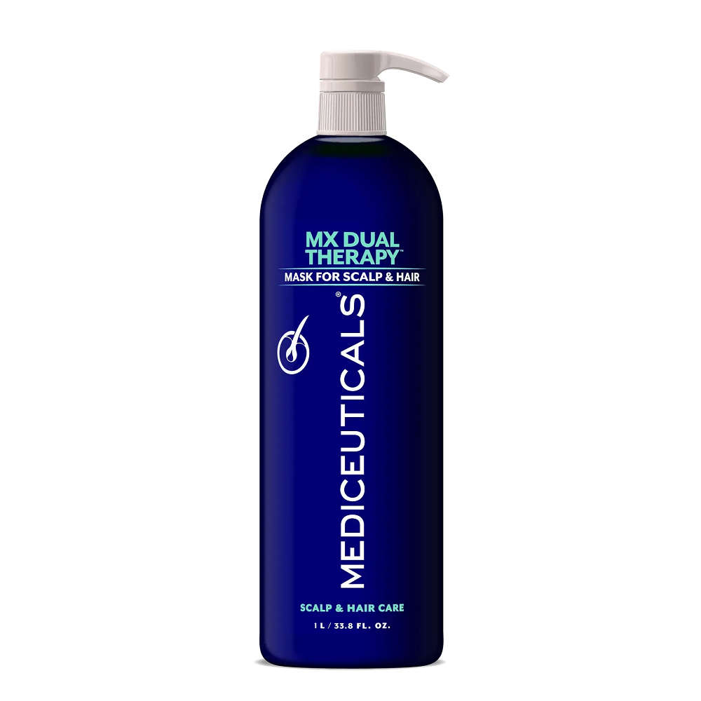 Нанесіть достатню кількість маски MX DUAL THERAPY™ на підсушене рушником волосся та шкіру голови, залиште на 3-5 хвилин, після ретельно змийте водою.
