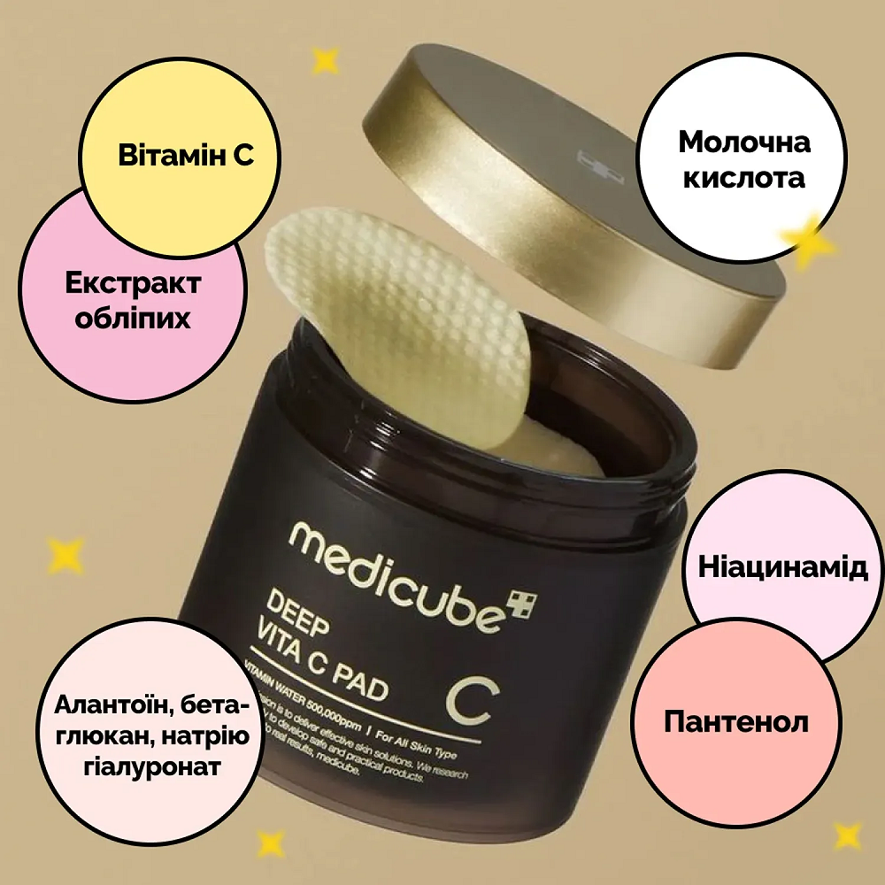 Medicube Deep Vita C Pad Освітлювальні відновлювальні пади з вітаміном C, 2 шт - Bloom HEALTH & BEAUTY