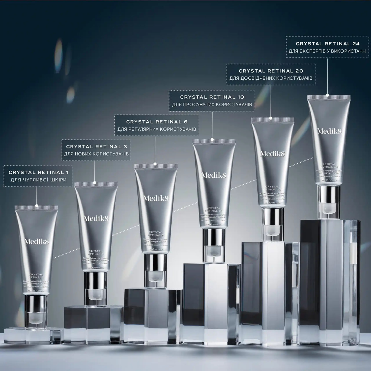 Відкрийте молодість своєї шкіри завдяки Crystal Retinal™ – унікальній революційній сироватці на основі ретиналю, який перевернув уявлення про вітамін А у догляді за шкірою. Формула доступна в 6 концентраціях, щоб забезпечити неперевершені результати без компромісів.