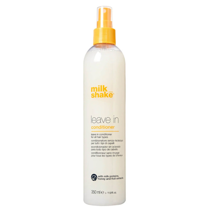 Незмивний кондиціонер для зволоження волосся Milk Shake Leave in Conditioner - це якісний продукт, який допомагає швидко вирішити проблему заплутаності волосся, надає їм м'якість, ефектний блиск і легкість укладання. Маючи потужний вітамінний склад на основі фруктових екстрактів, цей засіб інтенсивно збагачує волосся живлющою вологою та позитивною енергією. Активні компоненти проникають углиб волосся і живлять його на глибокому клітинному рівні. Також кондиціонер містить молочні протеїни, які відповідають за зміцнення та відновлення структури пошкоджених локони.