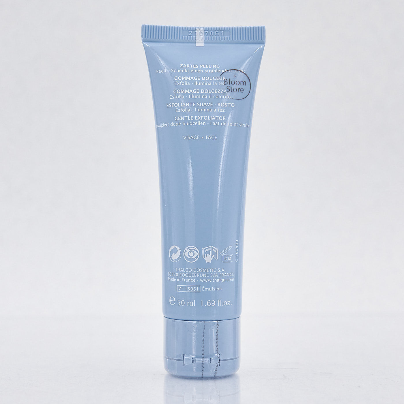 Ніжний Гоммаж Thalgo Gentle Exfoliator містить дрібні частинки, що відлущують, в кремовій текстурі. Він легко наноситься і не травмує шкіру, при цьому забезпечує ефект глибокого очищення і усуває ороговілий шар епідермісу. Нормалізує обмінні процеси в клітинах дерми, стимулює природне «дихання» шкіри, робить шкіру ідеально гладкою та шовковистою. Гоммаж допомагає очистити пори, покращити прохідність активних компонентів у клітини та прискорити кровообіг. Також вирівнюється тон та текстура обличчя.