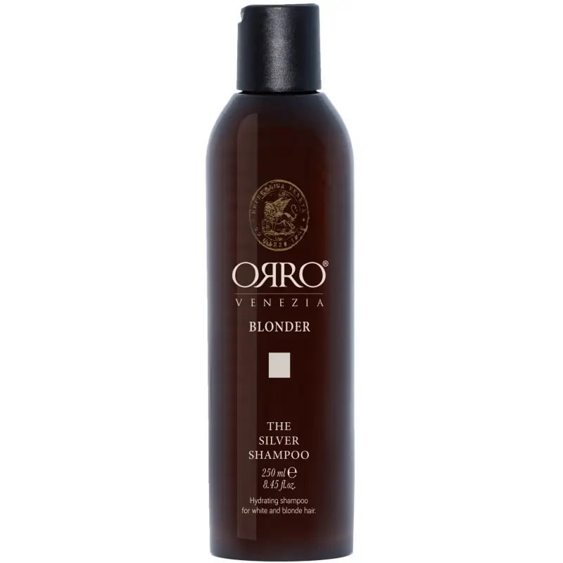 ORRO BLONDER Silver Shampoo - Срібний шампунь для світлого волосся. Лінія ORRO BLONDER для догляду за освітленим, білявим і сивим волоссям. Формула продуктів розроблена для запобігання жовтим і помаранчевим пігментам на освітленому та сивому волоссі. Зволожуючий шампунь для освітленого, білявого, мелірованого і сивого волосся з м'яким тонуючим ефектом. Шампунь живить та зволожує шкіру. Видаляє жовті та помаранчеві пігменти, посилює яскравість кольору освітленого та мелірованого волосся.