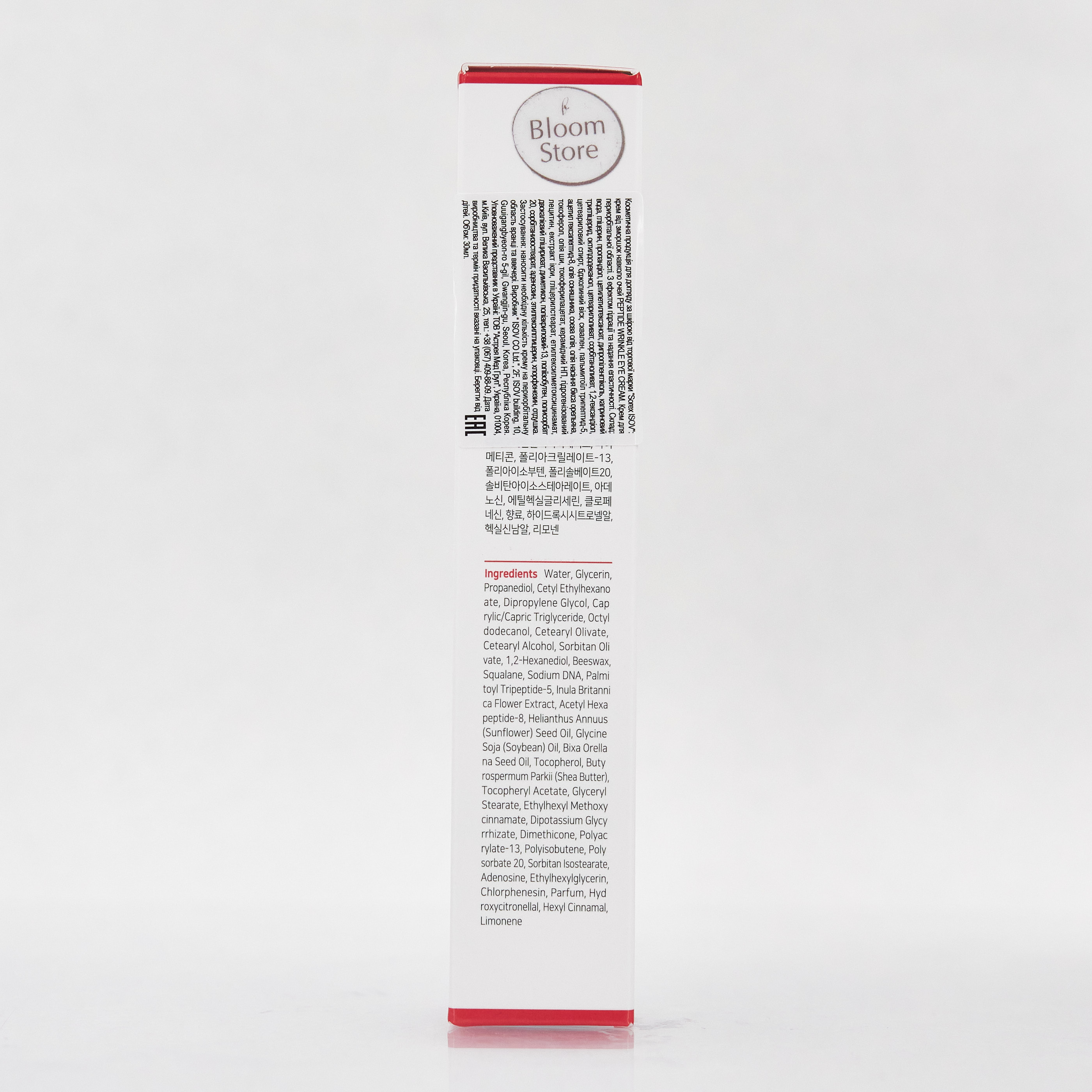 - екстракт ікри – уповільнює процеси старіння в шкірі, збільшує синтез еластину і колагену, відновлює гідробаланс, пришвидшує клітинне оновлення, блокує вільні радикали