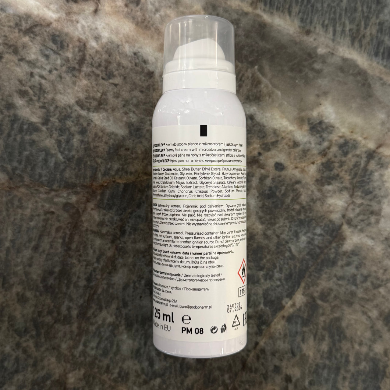 Кремова пінка містить сквалан, який стабілізує структуру ліпідів шкіри, відновлюючи епідерміс. Крім того, сквалан є компонентом природного себума, тому сквалан сприятливо впливає на суху шкіру стоп. Спіруліна - джерело мінералів, амінокислот, протеїну і вітамінів, швидко знімає подразнення і відновлює епідерміс. Приємний аромат пінки і ніжна текстура забезпечують комфортне нанесення і приємні відчуття навіть тоді, коли засіб повністю вбереться в шкіру. Після нанесення шкіра м'яка і гладка.