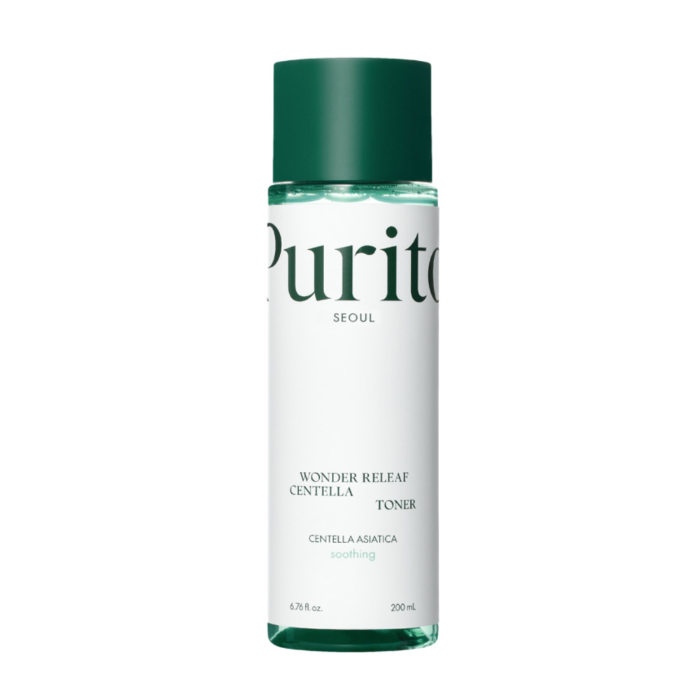 Purito Wonder Releaf Centella Toner – це ніжний тонік, який містить велику концентрацію центелли азіатської, відомої своїми заспокійливими та регенеруючими властивостями. Засіб збагачує шкіру вологою, покращує текстуру, зменшує запалення та мінімізує подразнення. Рослинні екстракти у складі сприяють заспокоєнню та загоєнню, роблячи шкіру більш здоровою та пружною.