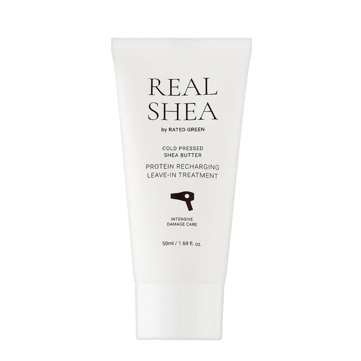 Відновлюючий термозахисний крем для волосся Real Shea Protein Recharging Leave-in Treatment від бренду Rated Green (Південна Корея) - салонний продукт, що містить комплекс натуральних речовин, які швидко запускають процес тонізування та природної регенерації.