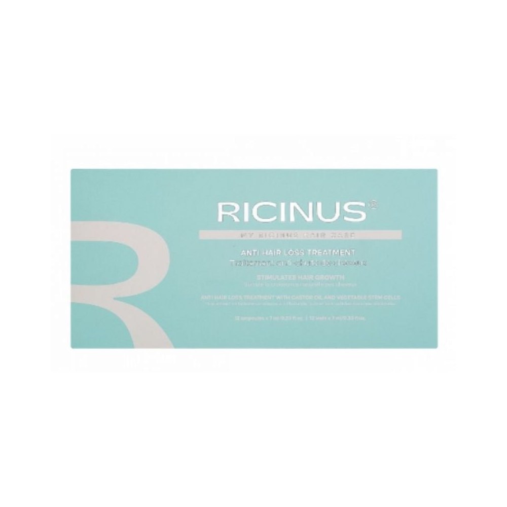 Ricinus Vials Treatments To Stop Hair Loss 12×7 мл від Ricinus — це професійний інтенсивний курс для тих, хто хоче зупинити випадіння волосся та повернути йому силу й густоту. Концентровані ампули працюють безпосередньо зі шкірою голови, зміцнюючи корені й створюючи ідеальні умови для активного росту нового волосся.