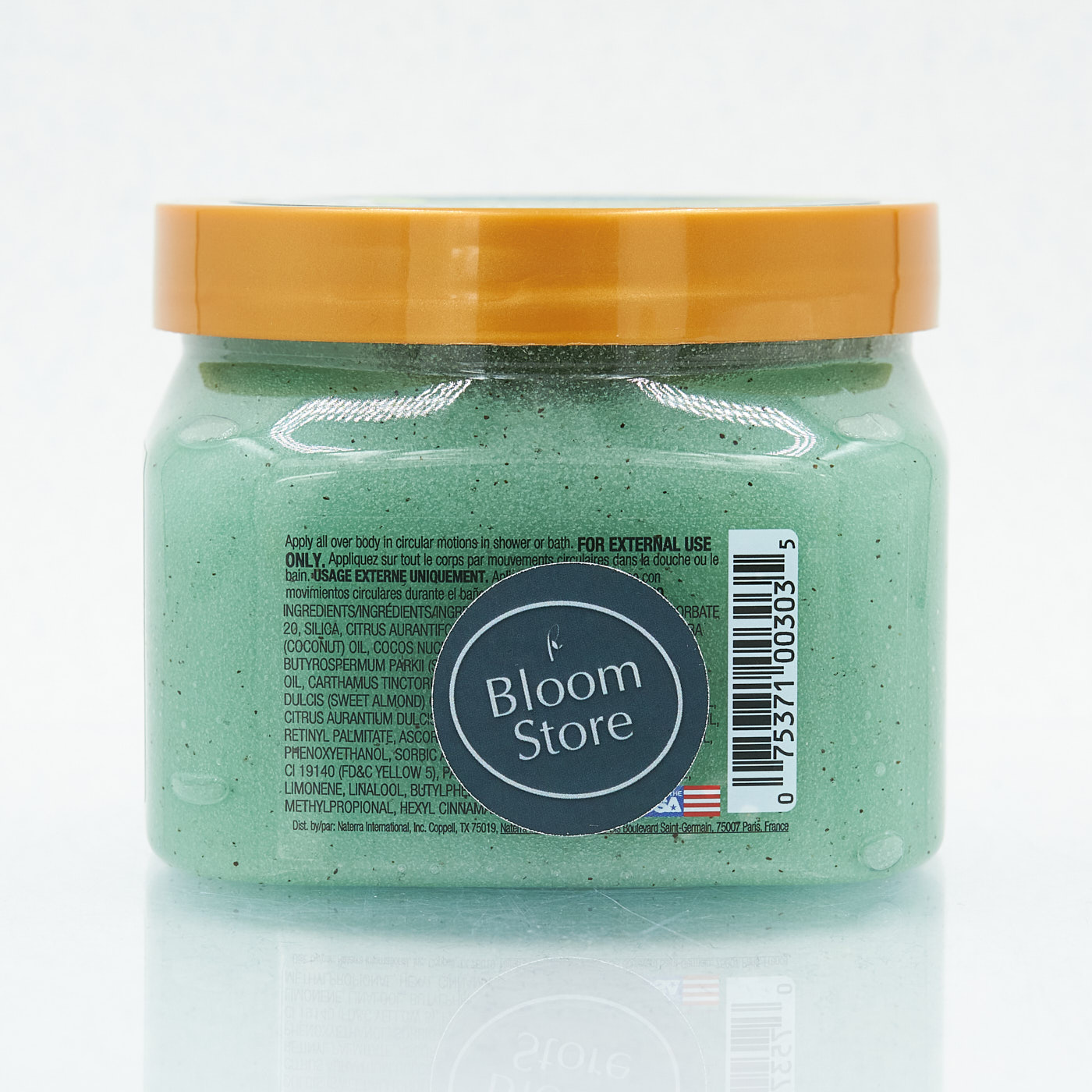 Sucrose, Glycerin, Polysorbate 20, Silica, Citrus Aurantifolia (Lime) Fruit Extract, Cocos Nucifera (Coconut) Oil, Cocos Nucifera (Coconut) Shell Powder, Butyrospermum Parkii (Shea) Butter, Persea Gratissima (Avocado) Oil, Carthamus Tinctorius (Safflower) Seed Oil, Prunus Amygdalus Dulcis (Sweet Almond) Oil, Oenothera Biennis (Evening Primrose) Oil, Citrus Aurantium Dulcis (Orange) Oil, Macadamia Ternifolia Seed Oil, Retinyl Palmitate, Ascorbic Acid, Aqua (Water/Eau), Caprylyl Glycol, Phenoxyethanol, Sorbic Acid, CI 42090 (Blue 1), CI 14700 (Red 4), CI 19140 (FD&C Yellow 5), Parfum (Fragrance), Benzyl Salicylate, Limonene, Linalool, Butylphenyl Methylpropional, Hexyl Cinnamal