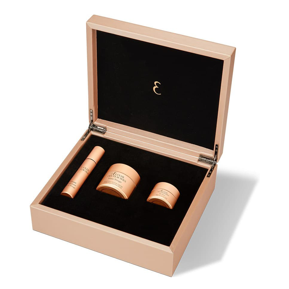 Действие: роскошные эффективные продукты по уходу за лицом в наборе от элитного швейцарского бренда.